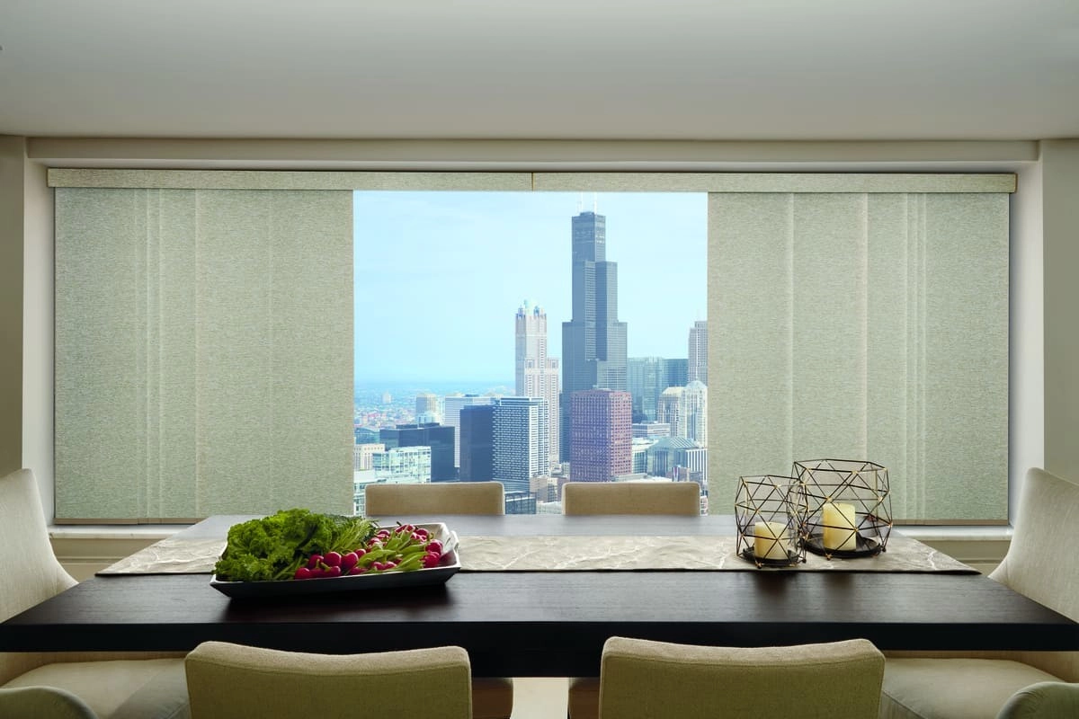Our Skyline® Gliding Window Panels are the ultimate vertical blinds for your large windows. They are specifically designed to be a statement piece: bold and beautiful. When these blinds are open, the blinds completely disappear behind each other, so you always have unobstructed views. Then, when they are closed, they leave your room looking modern and beautiful. In addition, if needed, they can be turned into room dividers to give you privacy in different areas of your home. These blinds have it all.